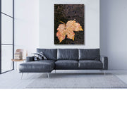 Het blad van een esdoorn ligt op de grond in een plas.