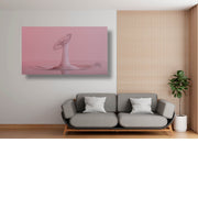 macro-opname van 2 druppels water die op elkaar botsen in melk in roze tinten