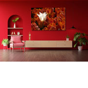 Witte tulp in een zee van oranje