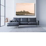 De zon zakt weg en werpt een warm licht op een vuurtoren