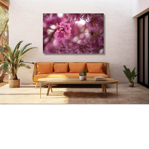 Ophira EschinasiDit zijn bloemen van de roze trompetboom, die bekend staat onder verschillende wetenschappelijke namen, waaronder Handroanthus impetiginosus en Tab...