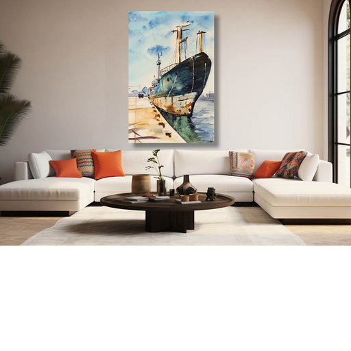 Leen VermeirHet schip ligt aan de kade en is klaar voor vertrek - Aquarel op zuurvrij papier.