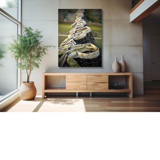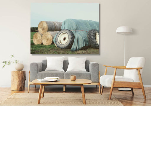 Kristof De RoyDe ingehaalde hooibalen worden afgedekt met een zeil en vastgezet met oude tractorbanden.