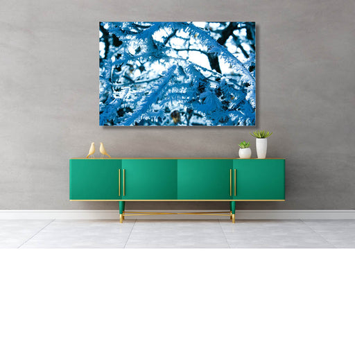 Steven VaesClose-up van met rijp bedekte takken in een winterlandschap, blauwe tinten