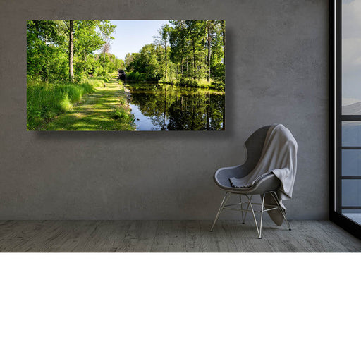 Eric De RoyHet kanaal van Hovetorp met een aantal sluizen en een jachthaventje. Beeld met reflecties van de bomen in het kanaal