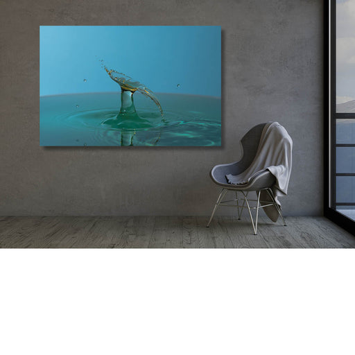 Jessie Van Dyckmacro-opname van 2 druppels water die op elkaar botsen in blauw met groene tinten