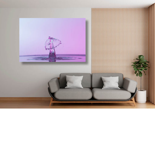 Jessie Van Dyckmacro-opname van een waterdruppel op het moment van impact in roze tinten