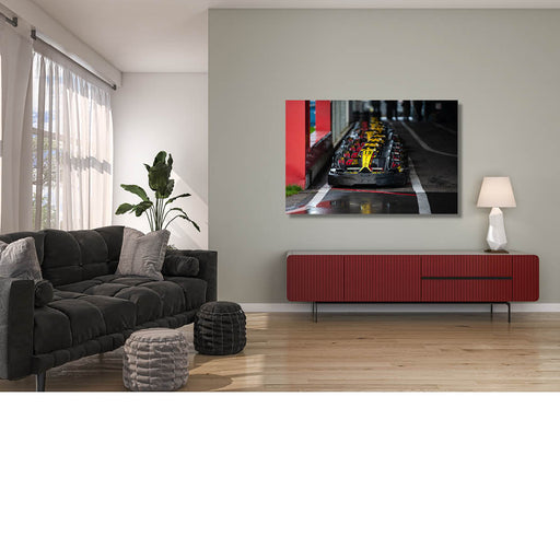 Ophira EschinasiDeze karts staan klaar langs de kant voor een volgende race.
