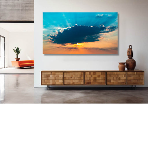 Bart MoensZon achter wolk met zonnestralen, blauw en geel