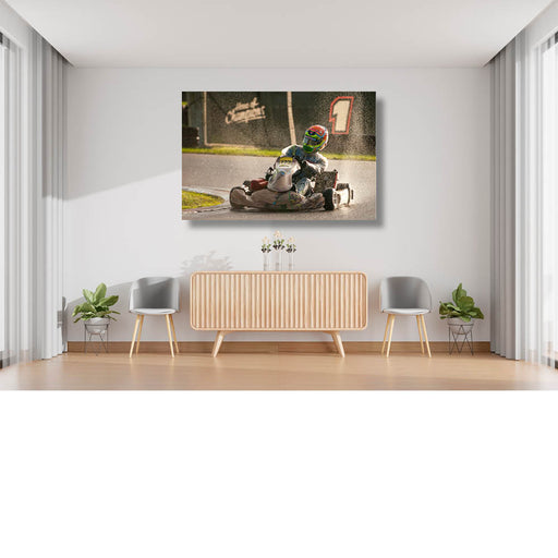 Ophira EschinasiEen kartcoureur gaat stevig door in de bocht.