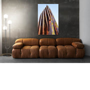 Dit imposante abstracte kunstwerk schiet naar de hemel.