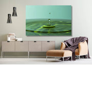 macro-opname van een waterdruppel op het moment van impact in groene tinten