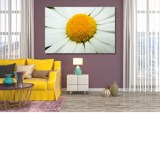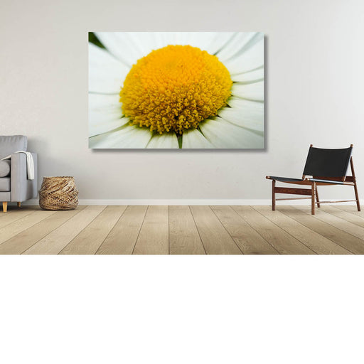 Kristof De RoyHet hart van een madeliefje van erg dichtbij gefotografeerd.