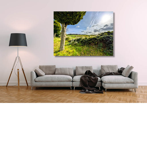 Steven VaesIntense zonnestralen breken door de bomen in een mistige ochtendweide. Het landschap baadt in warme tinten en zachte nevel, wat een krachtige en sf...