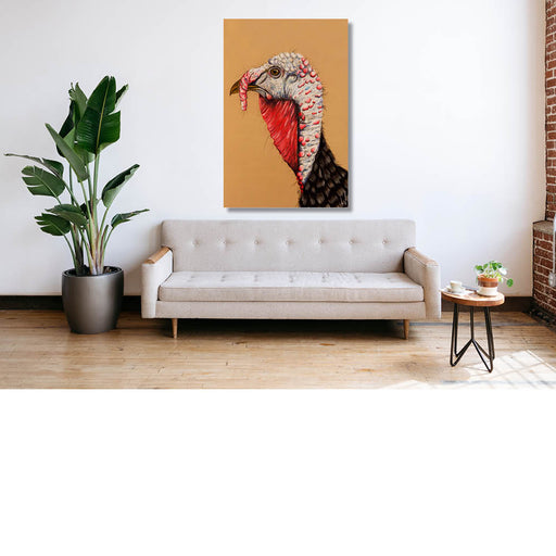 Leen VermeirEen karaktervolle kalkoen in profiel - Pastelkrijt en potlood op pastelmat.