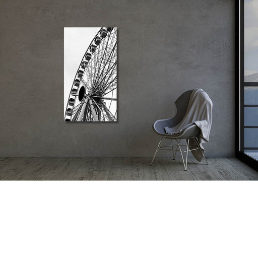 Zicht op reuzenrad The View vanuit het Centraal Station in Antwerpen, met een groot contrast tussen de beiden.