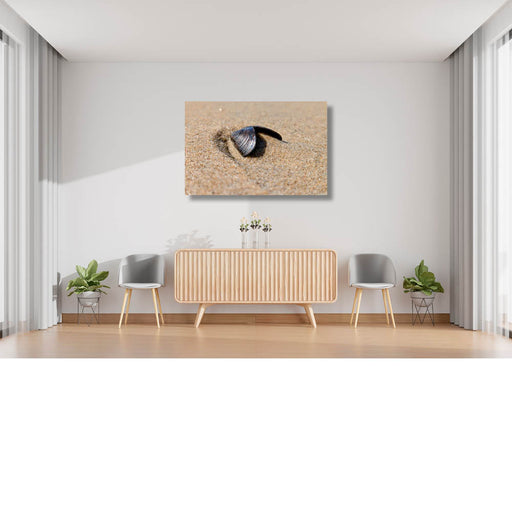 Een klein, eenzaam mosselschelpje in het zand kan ook heel mooi zijn.