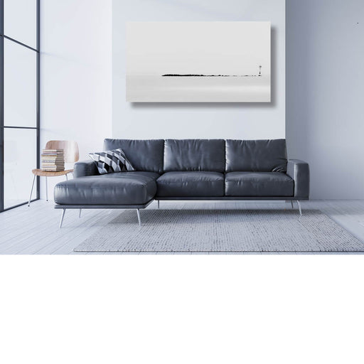 Steven VaesArtistieke zwart-witfoto van een kustlijn met een lange golfbreker en een navigatiepaal, vastgelegd in minimalistische stijl.