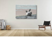Een zeehondje rust uit en ligt zich met het buikje in de zon. Bij hoog tij zwemt hij weer het water in.