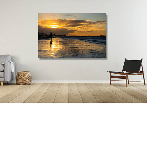 Nora MichielsEenzame wandelaar op het velaten strand in Westkapelle, Zonsondergang