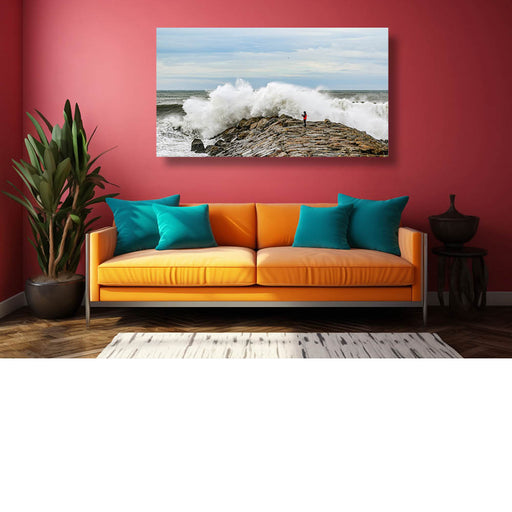 Eric De RoyVissen op de golfbreker bij stormachtig weer in Ovar Portugal